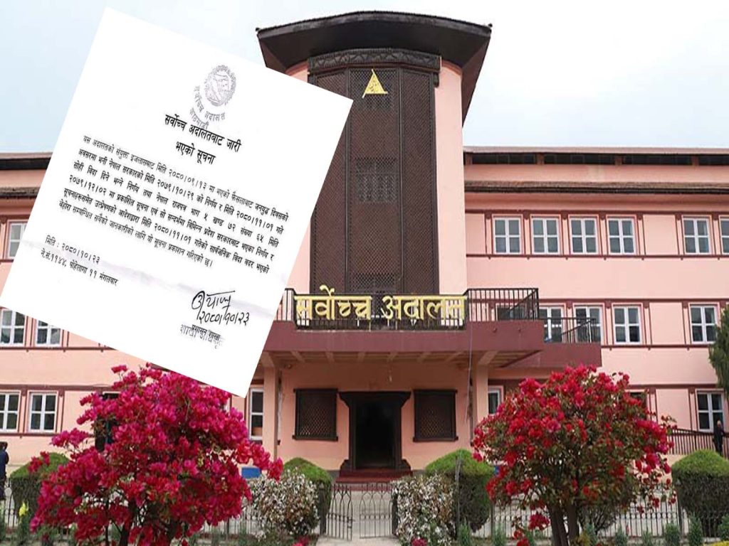 मंगलबार साँझ सूचना जारी गर्दै सर्वोच्चले उक्त जानकारी गराएको हो ।