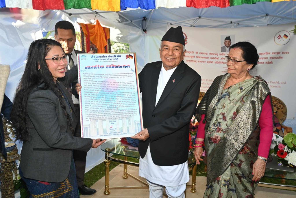 जर्मनी- मित्रराष्ट्र जर्मनीको भ्रमणमा रहेका राष्ट्रपति रामचन्द्र पौडेलको सम्मानमा जर्मनीको वर्लिनस्थित नेपाली राजदूतावासले आाइतबार विशेष स्वागत गरेको छ ।