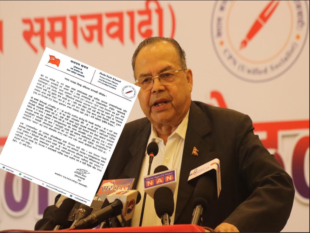 काठमाडौं । नेकपा एकीकृत समाजवादीका सम्मानित नेता झलनाथ खनालले आफ्नै पार्टीका उपमहासचिव मेटमणि चौधरीलाई कारबाही गर्न माग गरेका छन् ।