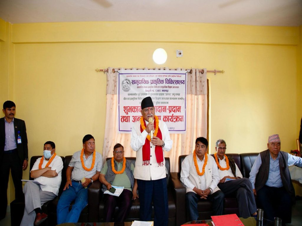 पार्टीको हुलाकी लोकमार्ग केन्द्रित अभियानअन्तर्गत नवलपुरको देवचुली नगरपालिका–१६ रजहरस्थित सामुदायिक प्राकृतिक चिकित्सालयमा आज आयोजित छलफलमा उनले चिकित्सालयलाई प्राकृतिक चिकित्सा शिक्षण अस्पताल तथा विश्वविद्यालयका रूपमा विकास गर्न आफ्नो पार्टीले सहयोग गर्ने प्रतिबद्धता व्यक्त गरे ।